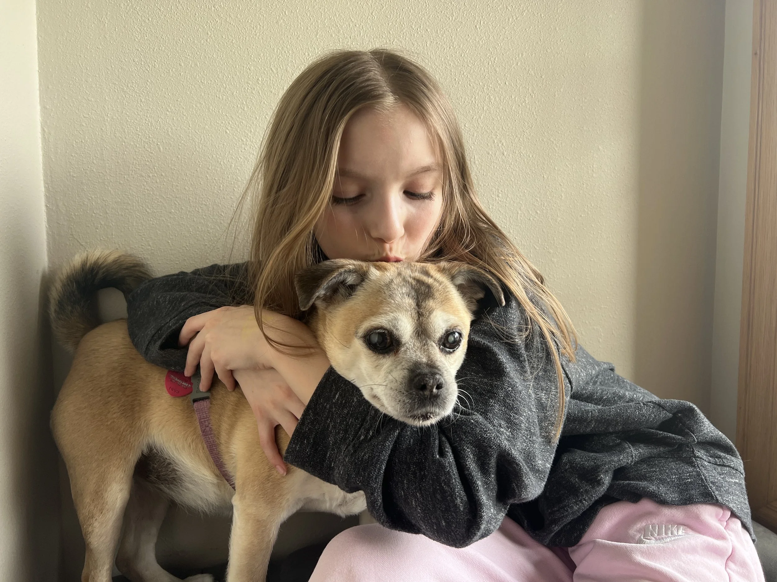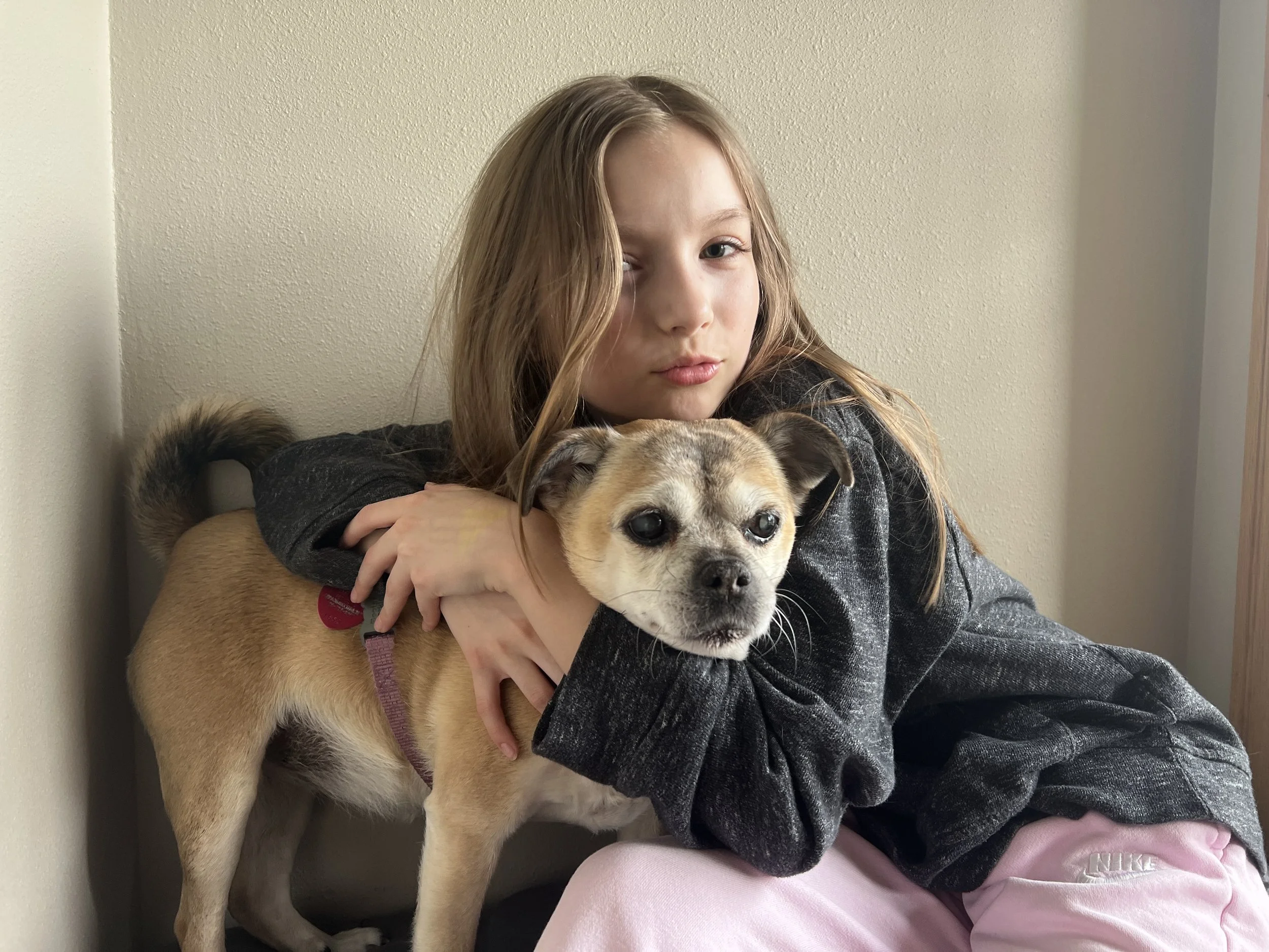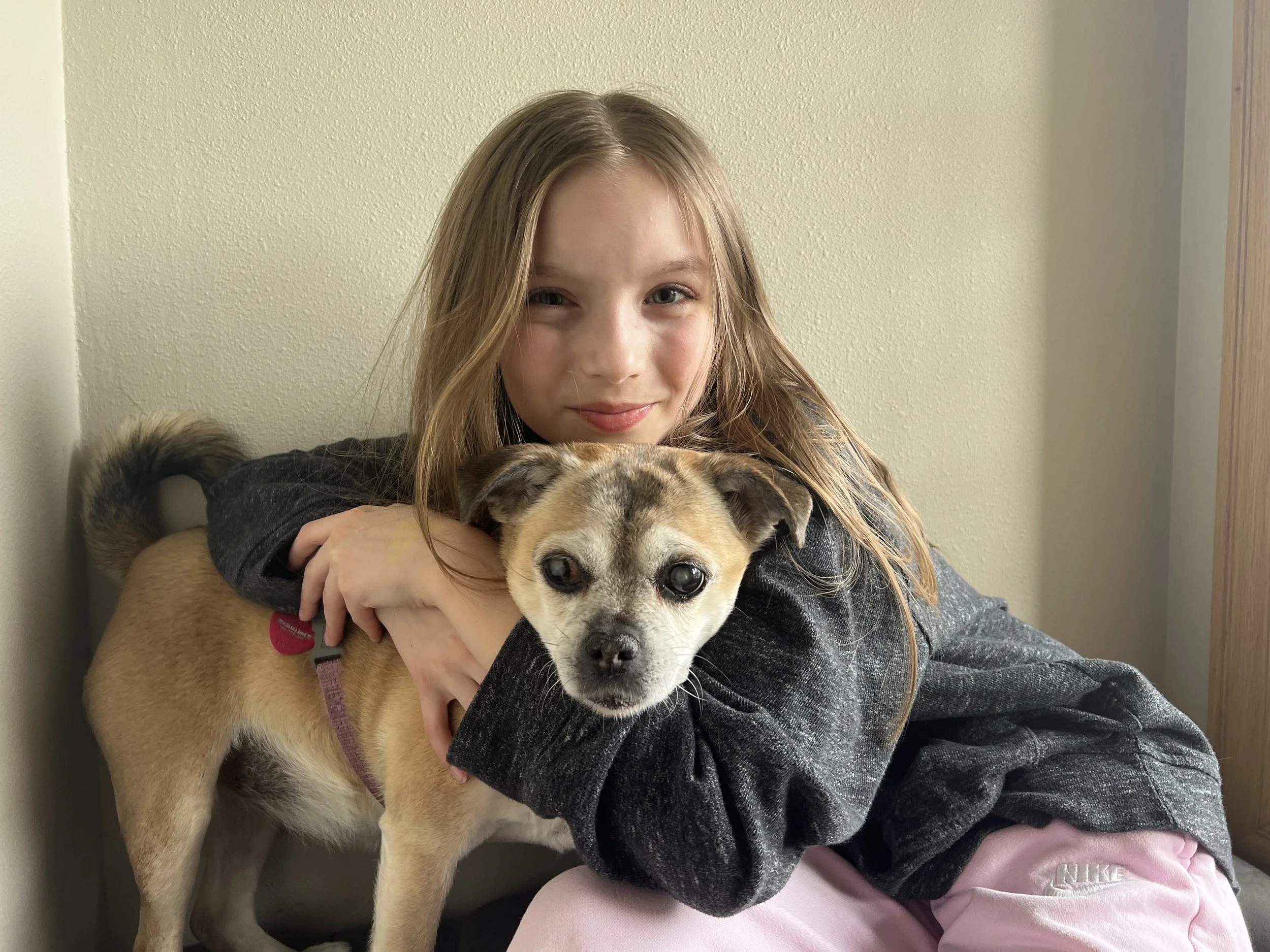 Hey y’all! My name is Emma. I’m 11 years old, turning 12 in May. I live in Wisconsin, soon to be Massachusetts, with my mom, dad, 14-year-old brother and our rescue dog Annie. Here I am with Annie!