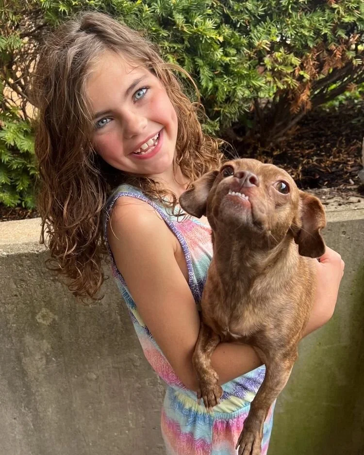 View fullsize Issue 03 highlight!!! This is Gracie with her dog, Peggy. They adopted Peggy from the Indy Humane Society in April of 2020. She is a true mutt and we love her to pieces!